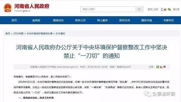 回想去年8月份,“一刀切”的呼聲同樣引起各地政府的注意,四川、山東、海南緊急叫停環(huán)保整改“一刀切”,對環(huán)保不作為、亂作為嚴(yán)肅問責(zé)。